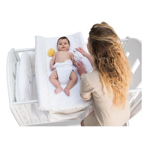 Fasciatoio rigido con due sponde di sicurezza lavabile ed adattabile a tutti i lettini di misura standard.