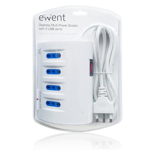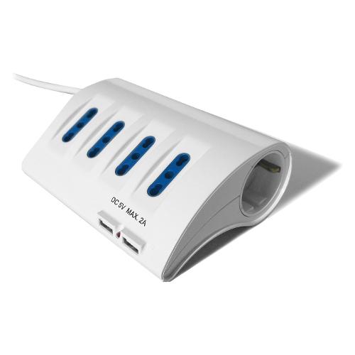 Multipresa tavolo 5P (+2 USB) 10/16A con interruttore EWENT Bianco EW3934