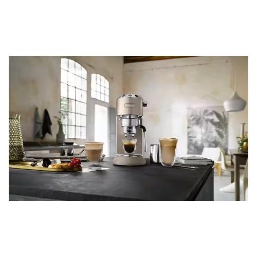 La macchina da caffè manuale Dedica Arte aggiunge un tocco di stile in più al design unico e iconico di Dedica. Compatta e allo stesso tempo robusta, questa macchina da caffè è il complemento perfetto per il piano di lavoro della tua cucina, capace di offrire in un attimo un ricco caffè mattutino, una microschiuma setosa per le tue bevande preferite a base di latte, e la massima praticità e comodità.