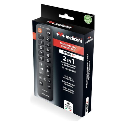 Telecomando universale semplificato 2 in 1, ideale per comandare le funzioni essenziali di 1 TV e 1 Decoder esterno (Digitale Terrestre o satellitare).Può comandare anche il solo TV.