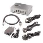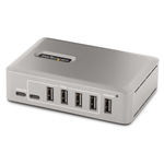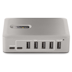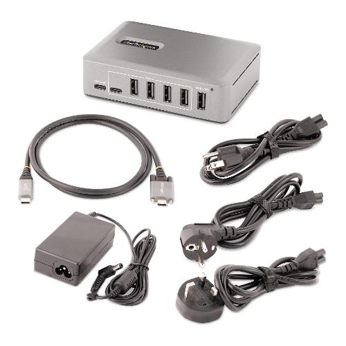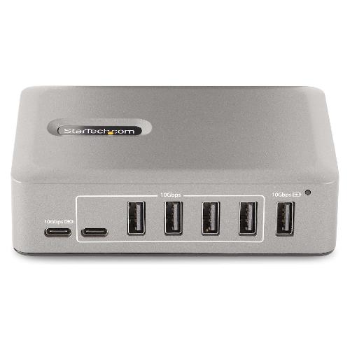Questo hub USB-C a 10 porte consente di aggiungere dieci porte USB 3.2 Gen 2 (10Gbps) (8x USB-A, 2x USB-C) a un computer occupando una sola porta USB-C. La multipresa USB autoalimentata con un adattatore di alimentazione incluso, è dotato di protezione da sovracorrente OCP, che impedisce alle periferiche di assorbire troppa energia, evitando la disconnessione dei dispositivi USB e lo spegnimento imprevisto dei computer. Il supporto per Wake On USB consente le comunicazioni USB, provenienti dai dispositivi collegati all'hub, di far uscire il computer dalla modalità di standby o da altre modalità di risparmio energetico/sleep.