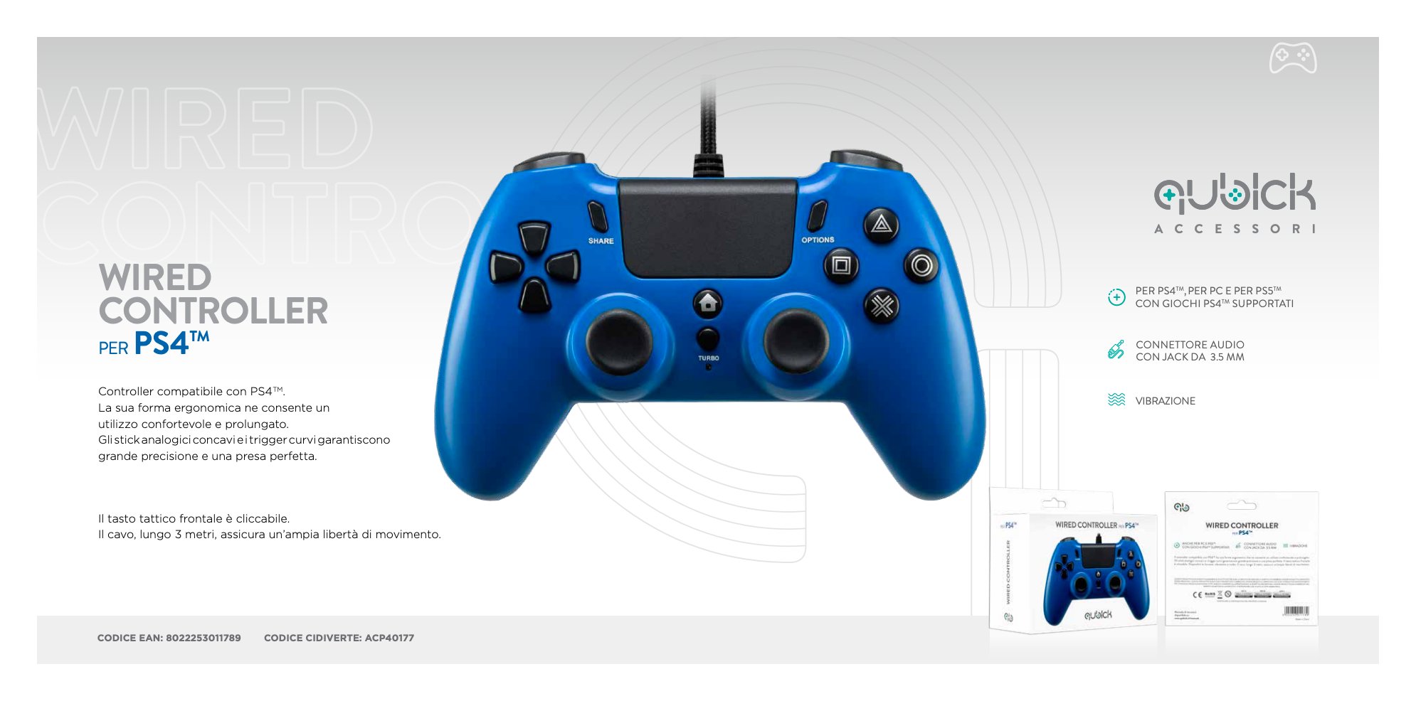 Gamepad PLAYSTATION 4 Wired Controller Blue ACP40177