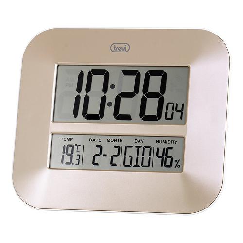 L'Orologio Digitale da Parete TREVI OM 3520 D è il prodotto ideale per arredare la parete del salotto o della cucina. Ricco di funzioni, ti terrà sempre aggiornato su orario, temperatura e umidità. L'orologio digitale Trevi si distingue per il suo design molto moderno e dalle linee eleganti. Il peso è contenuto e può essere agganciato alla parete oppure essere collocato su un mobile grazie ad un apposito piede d'appoggio. Il display LCD è dotato di una ottima visibilità anche ad una certa distanza. Al centro sarà indicato l'orario in formato 12/24 ore. Sul display del dispositivo Trevi potrai trovare anche altre informazioni come il calendario, con mese e giorno della settimana espresso in lingue diverse tra cui inglese, italiano, tedesco, spagnolo, francese, danese e olandese. Inoltre è indicata la temperatura dell'ambiente in gradi °C/°F. Per finire, è presente anche il livello di umidità espresso in percentuale