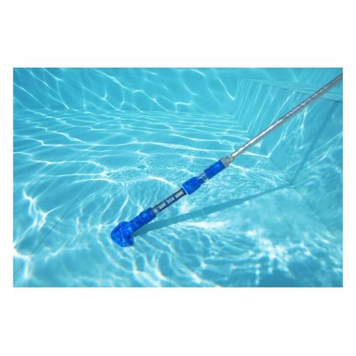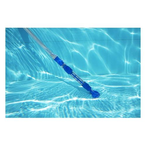 Grazie al palo a 3 sezioni, questo aspirapolvere può essere utilizzato in piscine fino a 6,10 m di diametro. Lo scomparto trasparente per i detriti ti consente di vedere quando è necessario svuotarlo.
