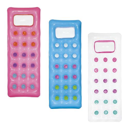 Presentati in piscina o in spiaggia con il materasso ad aria fashion alla moda e chic. Non lesinare sull'eleganza quando arriverà la prossima ondata di caldo e usa questo materasso ad aria per rimanere fresco, in più di un modo. Non preoccuparti del gonfiaggio faticoso, la costruzione a due camere lo rende facile e veloce. Il cuscino integrato è abbastanza comodo per un pisolino pomeridiano ed è trasparente per effetti divertenti. I cilindri cavi colorati sono visibili dall'esterno, in modo che la robustezza sia evidente.