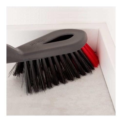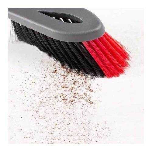 Per velocizzare la pulizia dei pavimenti rendendola più semplice e comoda possibile, abbiamo sviluppato la paletta con scopino 2in1 a manico corto. L'innovativo scopino 2in1 è costituito dalle setole sottili in fibra nera per rimuovere anche le particelle di polvere più fini e dalla tenace fibra rossa per pulire, invece, spazi e angoli stretti. Queste setole fini sono versatili e possono essere utilizzate su svariate superfici. Usa lo scopino su metallo, legno, piastrelle da bagno o laminato e altri materiali per renderli puliti in poche passate. Per praticità, la paletta con scopino presenta un design ergonomico del manico per una facile maneggevolezza. L'intuitivo sistema a incastro consente di inserire delicatamente la spazzola all'interno della paletta senza alcun ingombro.