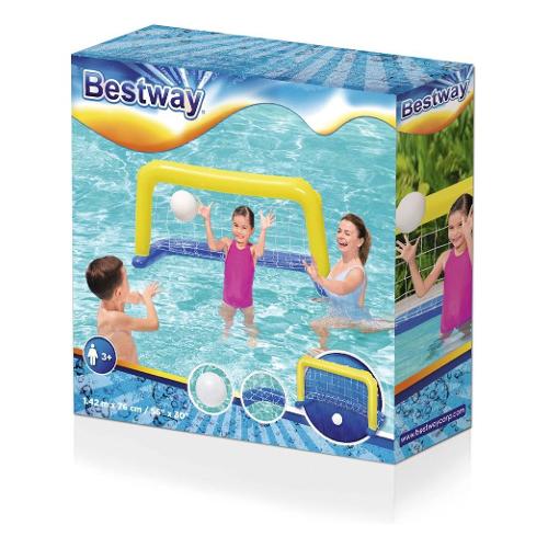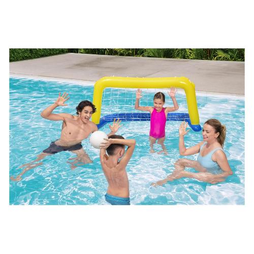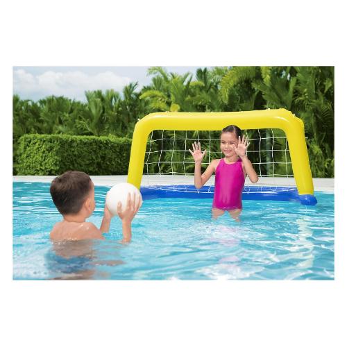 I bambini possono godersi al massimo gli sport acquatici con questo set di pallanuoto galleggiante di bestway®. Lanciare la palla gonfiabile nella robusta rete di nylon può allenare efficacemente le abilità del bersaglio. Il divertimento si unisce alla necessaria quantità di sano esercizio fisico. Il set è progettato idealmente per l'uso in acqua, ma può essere utilizzato anche come porta da calcio a terra. L'obiettivo è facile da configurare e offre ore di divertimento!