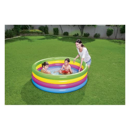 Progettata per l'esercizio e tanto divertimento all'aria aperta, questa piscina per bambini di qualità testata si concentra sul divertimento! Quelli colorati non solo attirano l'attenzione, ma offrono anche ai vostri bambini un'oasi di benessere rinfrescante durante le calde giornate estive. Le pareti laterali composte da quattro anelli della stessa dimensione sono estremamente robuste e attrezzate in modo ottimale per il gioco chiassoso. Basta gonfiare le quattro camere d'aria e sei pronto per partire. Spruzzare al sole non è mai stato così divertente con questa colorata piscina per bambini Bestway®! Consigliata per bambini da 3+ anni