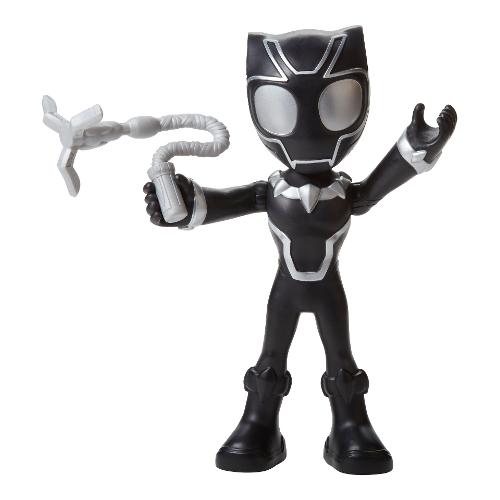 Black panther arriva in soccorso! Con questa action figure di supersized black panther, ispirata alla serie spidey e i suoi fantastici amici, puoi sognare davvero in grande! Con una notevole altezza di 22,5 cm, questa action figure del supereroe enorme e snodabile è grande, amichevole e pronta per giocare! I bambini e le bambine possono fissare l'accessorio rampino al polso della action figure di black panther e muoverle la testa e le braccia per farle assumere pose d'effetto, ricreando le loro scene preferite della serie animata marvel per età prescolare su disney junior. Cerca anche le action figure di supersized spidey e supersized miles morales: spider-man per vivere ancora più avventure insieme a spidey (ciascuna venduta separatamente, secondo disponibilità). Questi giocattoli di spidey e i suoi fantastici amici sono perfetti da regalare a bambini e bambine dai 3 anni in su che adorano le avventure da supereroi.