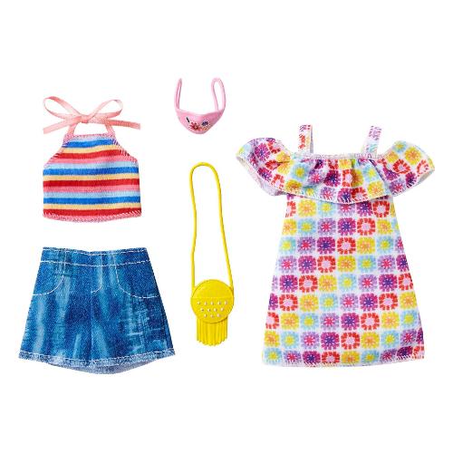 Questi accessori moda ti consentono di raddoppiare il divertimento e di creare 2 look alla moda! I look per Barbie® includono un abito o un completo in una varietà di colori e stampe alla moda, tutti ispirati alle ultime tendenze; alcuni includono anche una giacca. Gli accessori potrebbero includere borsette, gioielli, occhiali da sole o fermagli per capelli. Scambiali e abbinali con altri abiti e accessori Barbie® per ispirare la tua fantasia e creare nuove storie (ognuno in vendita separatamente, secondo disponibilità).Grazie alla varietà sempre più ampia, collezionare le bambole e gli accessori moda Barbie® sarà ancora più divertente. Collezionali tutti per ampliare le possibilità di gioco!
