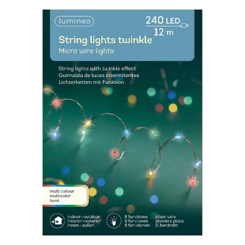 Filo Silver 240 luci - MICROLED Multicolore (12 mt) 8 Giochi di luce LUMINEO IP44 497064