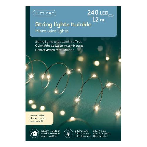 Filo Silver 240 luci - MICROLED Bianco caldo (12 mt) 8 Giochi di luce LUMINEO IP44 497076