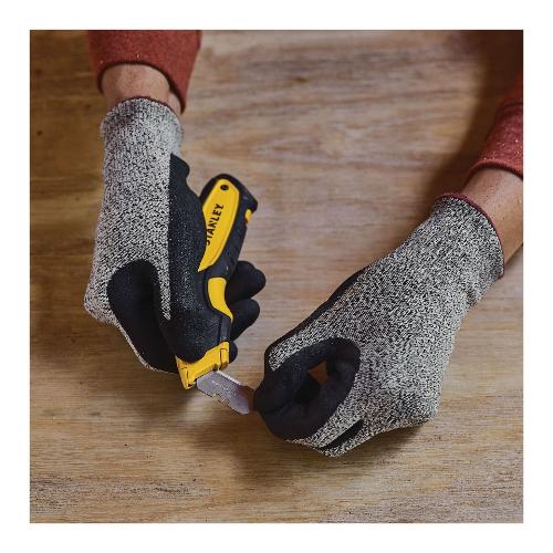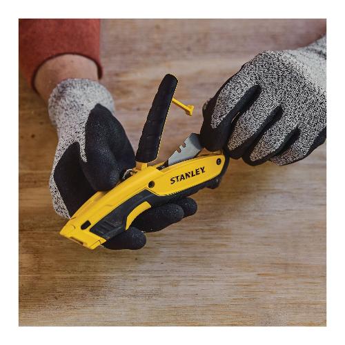 Coltello a lama retrattile con pulsante di regolazione dell’esposizione della lama a 5 posizioni, per il controllo della profondità di taglio. Serbatoio portalama che può contenere fino a 10 lame. Sistema interlock di incastro dei semigusci. Fornito con 3 lame in omaggio