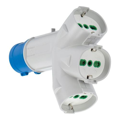 In tecnopolimero alta resistenza meccanica e termica. Spine e prese con spinotti e alveoli attivi protetti da contatti diretti accidentatli e/o volontari