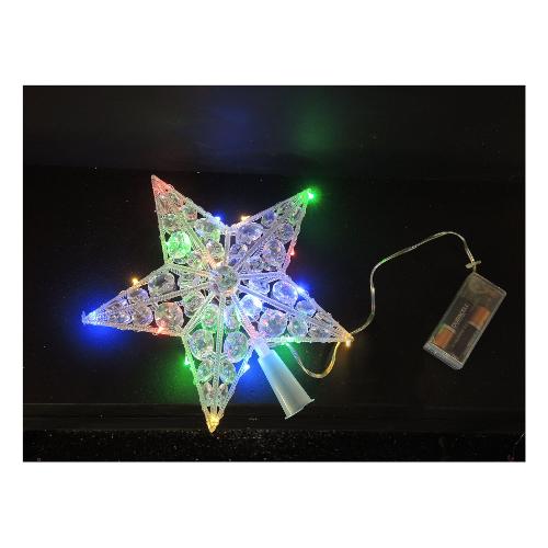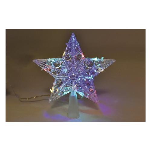 Puntale con gemme luminose a luce fissa da utilizzarsi esclusivamente in ambiente interno. Funzionamento con 2 batterie tipo aa (lr6) non incluse nella confezione