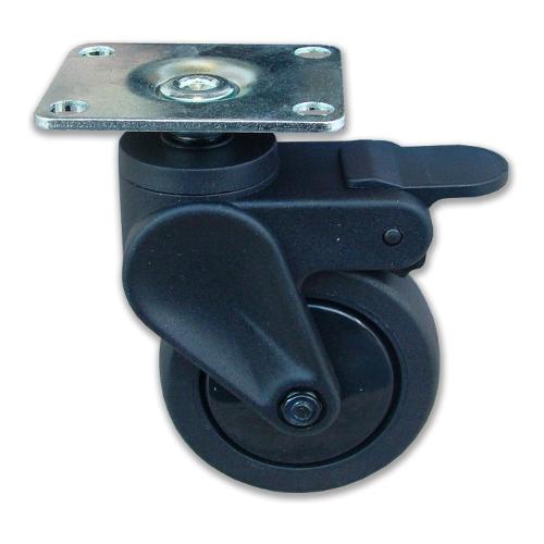 Supporto in poliammide 6 e fibra minerale,ruote con nucleo in poliammide 6 e battistrada in poliuretano termoplastico TPU, piastra in acciaio di elevato spessore e parafili in poliammide 6 lucidi