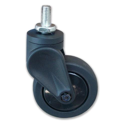 Supporto in poliammide 6 e fibra minerale,ruote con nucleo in poliammide 6 e battistrada in poliuretano termoplastico TPU, piastra in acciaio di elevato spessore e parafili in poliammide 6 lucidi