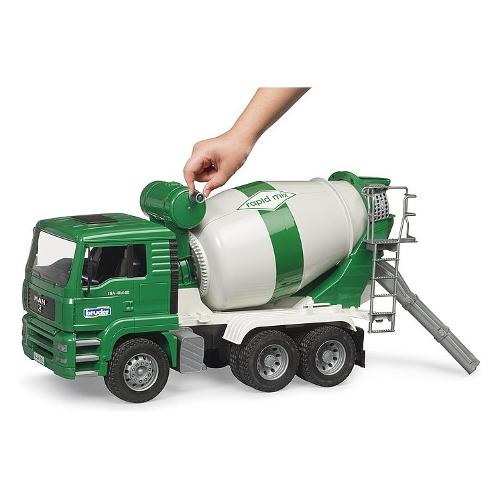 La nostra nuova betoniera si basa sul noto e collaudato man tga. La cabina di guida è ribaltabile e consente di vedere il basamento. Il tamburo della betoniera può essere ruotato utilizzando la manovella montata nel serbatoio dell'acqua. Il tamburo contiene una coclea di trasporto e miscelazione e, esattamente come l'originale, lo scarico avviene invertendo il senso di rotazione. La coclea all’interno del tamburo trasporta quindi il materiale all’indietro, fino allo scivolo di uscita. Sono disponibili due lamiere di scarico applicabili. Un personaggio bworld può controllare la funzione di miscelazione salendo sulla scala inclusa. Protagonista dell'ampia offerta di veicoli da cantiere bruder, questa fantastica betoniera può essere combinata, ad esempio, con l'autocarro ribaltabile bruder e l'escavatore liebherr (n. art. 02751) e molti altri veicoli per creare un infinito mondo di giochi.