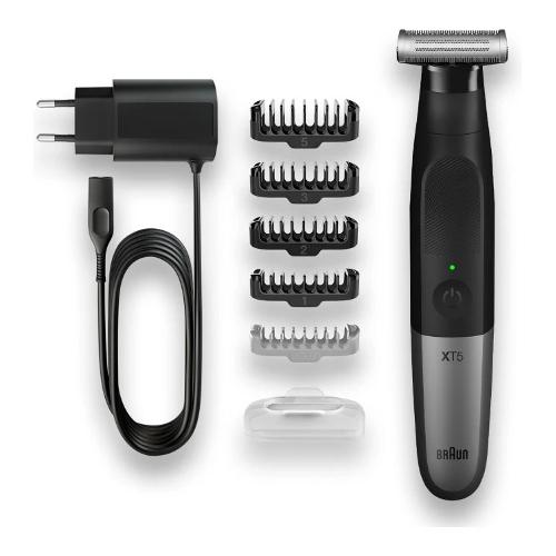 Rifinisci in qualsiasi direzione con il rasoio elettrico barba e corpo Braun XT5 5100. La lama 4D in metallo dura fino a 6 mesi ed è dotata di un pettine a due direzioni per facilitare lo styling. La lama a gabbia e la tecnologia SkinGuard assicurano che la lama non tocchi mai la pelle.