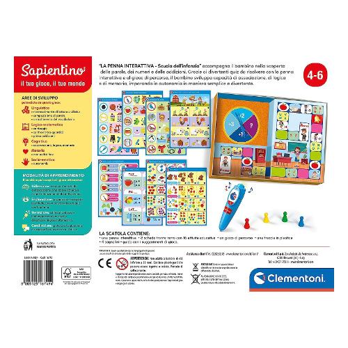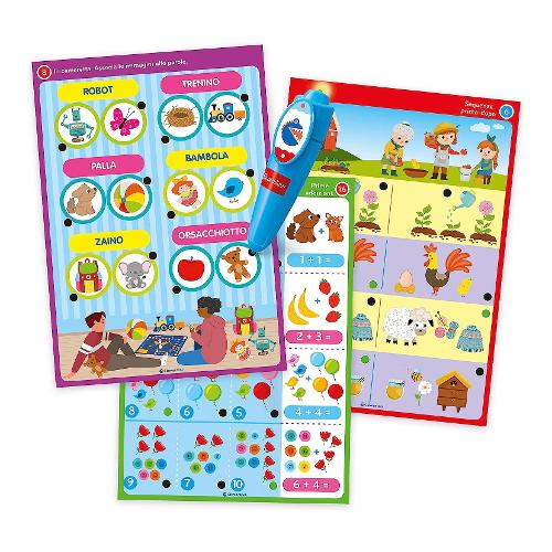 Un compendio di quiz ed attività educative studiato per gli ultimi anni della scuola dell'infanzia. Con la penna interattiva si potranno risolvere tanti quiz a tema parole, sillabe, prime operazioni e attività logiche. 8 schede educative e 16 attività di gioco per esercitare la logica e potenziare le competenze, in linea con i programmi delle scuole dell’infanzia. La penna segnala le risposte giuste con suoni e luci, in questo modo il bambino è in grado di progredire nel gioco in autonomia. Gioco educativo pensato per bambini in età prescolare.