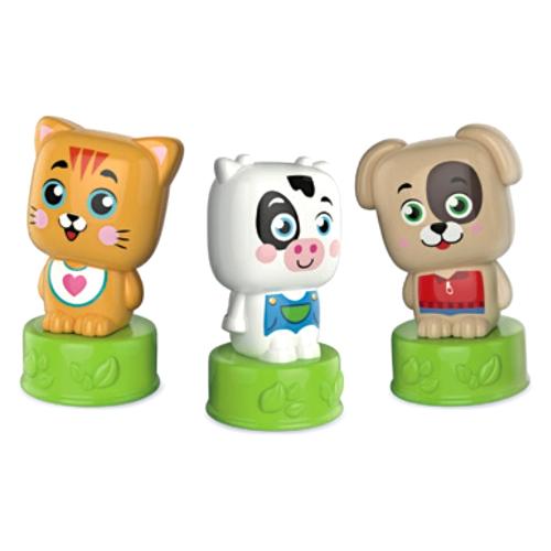Un playset a tema animali, arricchito da un libricino di cartone illustrato. Il bambino potrà divertirsi a giocare con i teneri personaggi, inventare tante storie con l'aiuto del libro, stimolando la fantasia, l'emotività e il linguaggio. Il set contiene: 6 mattoncini e tre personaggi. I morbidi mattoncini clemmy aiutano a stimolare la manualità e la sensorialità. Personaggi e mattoncini sono lavabili in acqua tiepida con un detergente neutro. I mattoncini clemmy sono studiati, disegnati e realizzati in italia.