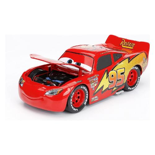 Goditi il modellino in scala del protagonista del film Cars Saetta Mcqueen, in questa realistica ricreazione della più famosa auto Disney Jada Toys, specialista in modellini di veicoli e statuette in metallo pressofuso. Il cofano si apre e lascia vedere il potente motore. Pneumatici in gomma