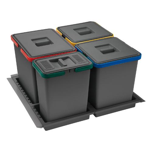 Unico nel suo genere il Sistema di pattumiere Metropolis è un accessorio da inserire direttamente nei cassettoni. Un sistema flessibile che si adatta alle svariate misure interne dei cassetti, completamente modulabile e dal montaggio estremamente semplice. Fornito con guarnizione flessibile per compensare le eventuali differenze di misura bloccando perfettamente il vassoio. La possibilità di spostare i divisori garantisce estrema flessibilità. Secchio con coperchio con filtro antiodore (rigenerabile con lavaggio fino a 50 volte)