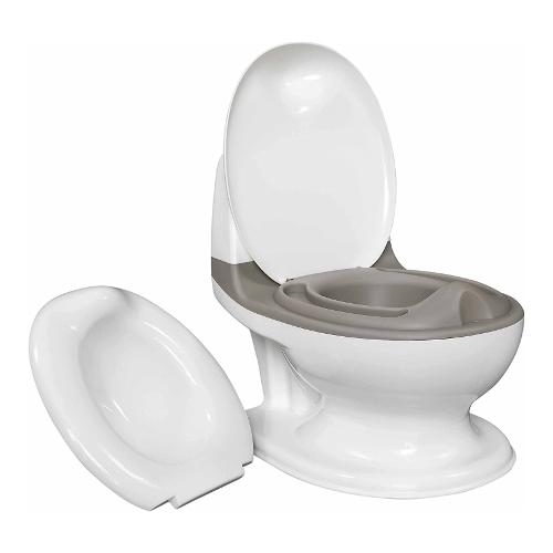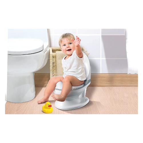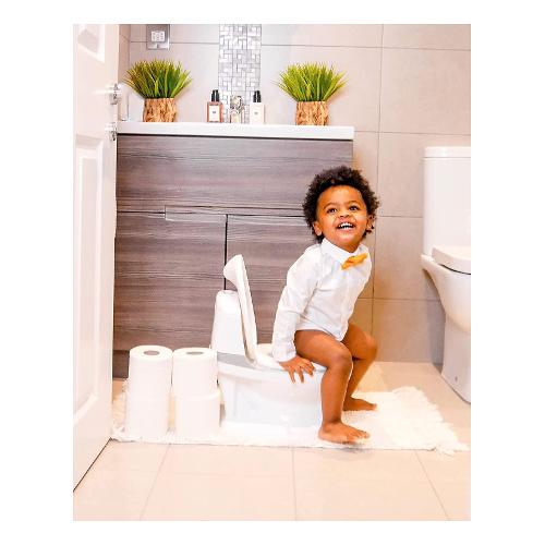 La pratica rende perfetti quando si tratta di abituare il bambino all'uso del vasino, quindi quale modo migliore per farlo se non quello di utilizzare questo realistico vasino educativo che riproduce un WC in miniatura? Una volta che il tuo bambino ha terminato di usarlo, puoi abbassare il coperchio e premere la maniglia dello scarico che emette un suono di sciacquone realistico. Dopo aver festeggiato assieme al bambino i suoi progressi, puoi rimuovere il contenitore interno, gettare il contenuto nel WC e pulirlo con facilità.