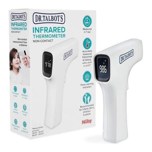 Controlla la temperatura del tuo bambino in modo sicuro e veloce con il termometro a infrarossi Dr. Talbot. Il termometro misura la temperatura facilmente e accuratamente in un solo secondo. Per prendere la temperatura del tuo bambino, tieni il termometro sulla sua fronte. La temperatura può essere presa anche ad una distanza di 5 cm dalla fronte. Lo schermo a LED e l'avviso di febbre assicurano che tu sappia immediatamente come sta il tuo bambino. Nessun contatto.