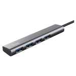Il raffinato hub USB in alluminio aggiunge al computer 4 porte USB-A in più con una velocità di 5 Gbps con una porta USB-C