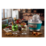 Prepari il tuo gelato preferito in soli 30 minuti. La macchina per fare il gelato da 1,5 L dispone di cestello a doppio isolamento rimovibile con liquido refrigerante e coperchio superiore trasparente con foro per aggiungere gli ingredienti: pre-refrigera 24 ore prima il cestello, ponilo all’interno della macchina e inizia a preparare il tuo gelato.