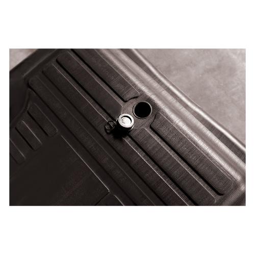 Base in polietilene stampato in colore nero, dotata di ruote sul fronte, riempibile con acqua (64 kg) per garantire la massima stabilità durante il gioco. (dim. 90x60x15 cm)