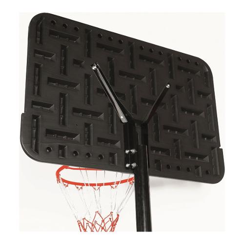 Robusto tabellone da basket con colonna, facilmente trasportabile, adatto per giocatori adulti.