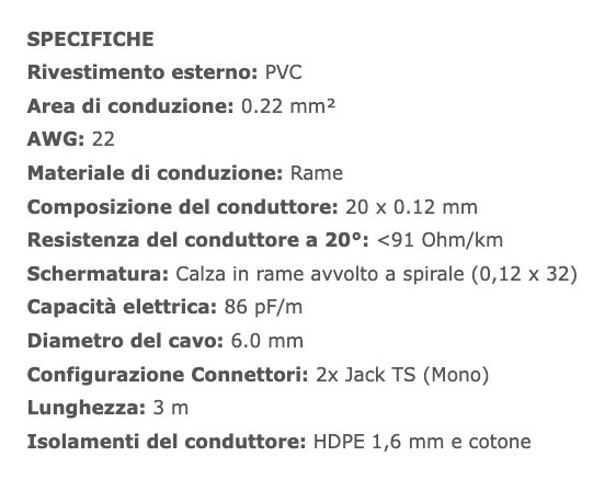 JJ SL è il cavo per strumenti sbilanciato della lunghezza di 3 m con connettori in finitura argento opaco con attacco Jack TS (Mono) da 6,3 mm.