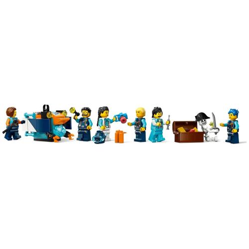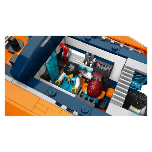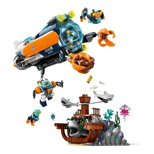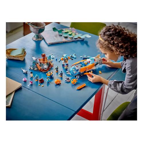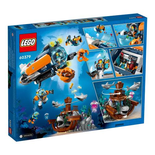 Il Sottomarino per esplorazioni abissali LEGO® City (60379) è ricco di funzioni e dettagli realistici. Il sottomarino è dotato di una cabina di pilotaggio bombata, di un laboratorio scientifico a bordo, di un drone subacqueo e di uno scafandro in stile mech per l’esplorazione dei fondali marini. L’ambientazione del relitto ospita una tana di squali, meduse giganti e tesori sommersi. Basta aggiungere le 6 minifigure per ore di gioco di ruolo fantasioso. Questo playset 7+ include una guida alla costruzione illustrata e le istruzioni nell’app LEGO Builder, una straordinaria guida digitale che consente ai bambini di esplorare e salvare playset virtuali, di seguire i propri progressi nella costruzione e di ingrandire e ruotare i modelli da tutte le angolazioni durante la costruzione.