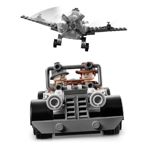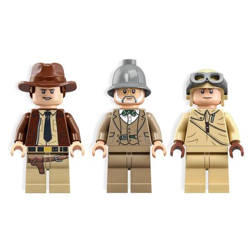 Il set da costruzione contiene 3 minifigure: Indiana Jones con la sua famosa frusta, il padre Professor Henry Jones Sr.™ con in mano un diario, e il pilota dell’aereo che consente ai bambini di ricreare la famosa scena dell’inseguimento del film “Indiana Jones e l’ultima crociata”.