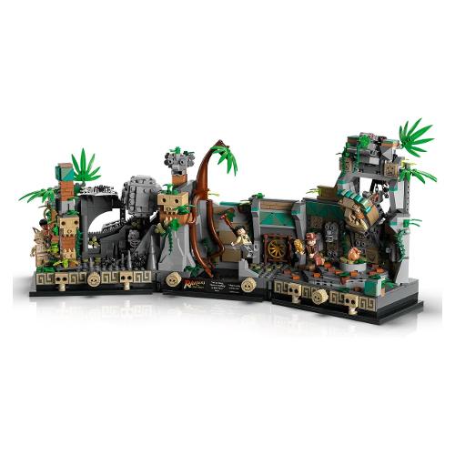 Questo modello LEGO Indiana Jones contiene 4 minifigure – Indiana Jones, Satipo, Belloq e un guerriero Hovitos – ed è ricco di funzioni interattive. Il modello è dotato di una base con 4 manopole per abbassare e illuminare l’idolo, far crollare un muro, far dondolare Indiana Jones appeso alla liana nella caverna, aprire una botola e vedere Indy inseguito da un enorme macigno.