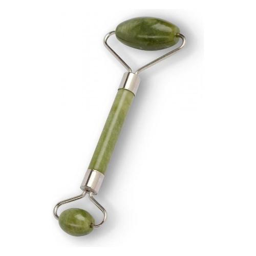 Rullo doppio in giada naturale. Aiuta a ridurre le rughe, rinfresca e leviga l'incarnato, migliora la circolazione, rassoda la pelle e migliora l'assorbimento dei prodotti.