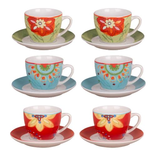 Set tazzine caffè con piatto 6 pz FLOWERS Fantasie assortite Art 39