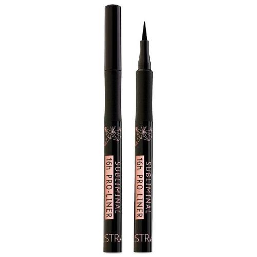 Subliminal 16h pro-liner scorre sulla palpebra come inchiostro nerissimo, definendo lo sguardo con articolati giochi grafici o sottilissime linee di precisione grazie al fine applicatore in feltro. Dermatologicamente e oftalmologicamente testato