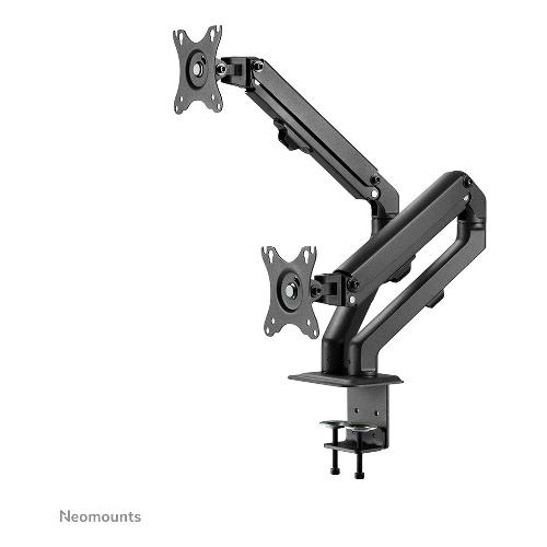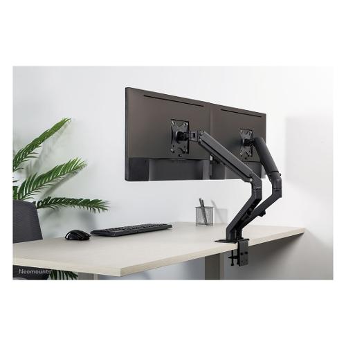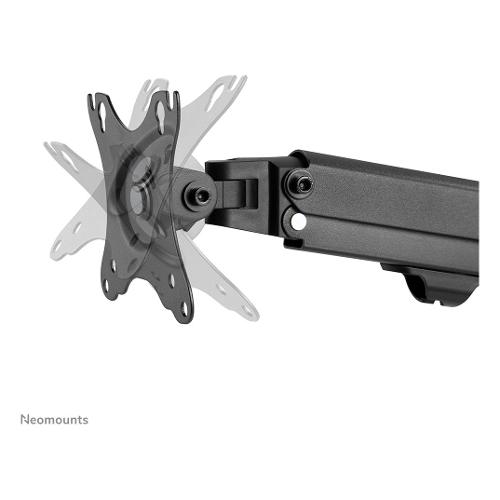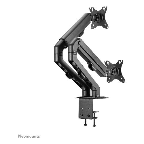 Il Neomounts di Newstar FPMA-D650DBLACK è un supporto da scrivania completamente mobile per due schermi piatti fino a 27" con una capacità di peso massima di 7 kg. La versatile tecnologia di inclinazione (130°), rotazione (360°) e rotazione (180°) consente al supporto di passare a qualsiasi angolo di visione per beneficiare appieno delle capacità dello schermo piatto.Inoltre, il supporto è dotato di regolazione dell'altezza assistita da molla (11-42 cm) e regolazione della profondità (0-49,4 cm), per creare la perfetta situazione di lavoro Le clip intelligenti per la gestione dei cavi assicurano un'instradamento ordinato dei cavi.