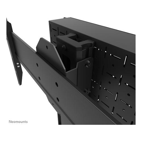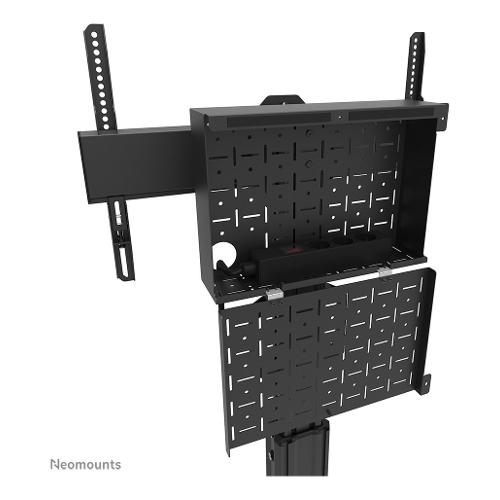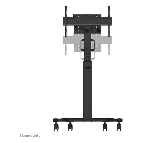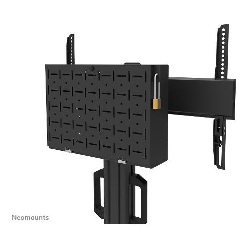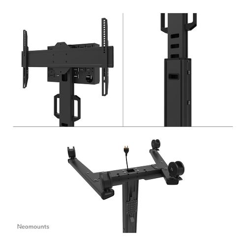 Neomounts Select FL50S-825BL1 è una piantana mobile per schermi piatti fino a 75" con una capacità di peso massima di 70 kg. La piantana è regolabile manualmente in altezza (114,5-153,5 cm), così come la testa della staffa. È incluso un vano chiudibile con serratura e ventilato, opzionale per l'installazione (sia in verticale che in orizzontale).
