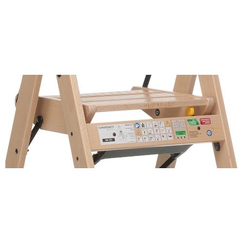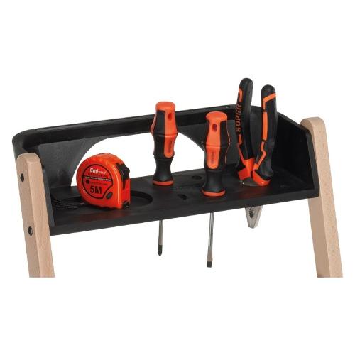 Ha la struttura in legno massiccio di faggio verniciato all’acqua ed è made in italy. È completa di barriera di protezione, ampia pedana e pratica vaschetta porta attrezzi.