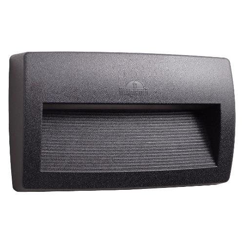 Lampada a muro con emissione della luce diretta verso il basso. Realizzata in resina antiurto, stabilizzata ai raggi UV, inattaccabile da ruggine e corrosione. Fornita con inclusa lampadina con Kelvin impostabile, certificata TÜV, di lunga durata ed elevata efficienza. Classe di isolamento II