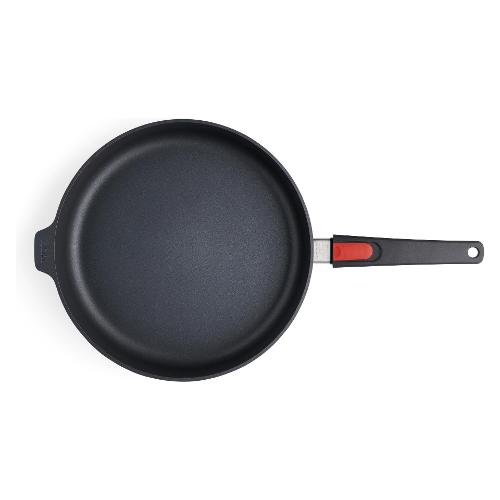 Padella alta antiaderente con bordo rinforzato, adatta a tutti i tipi di cucine. La base termica di circa 6 mm di spessore permette un ottimo accumulo di calore senza deformarsi al contatto con alte temperature. Manico rimovibile comodo e sicuro.