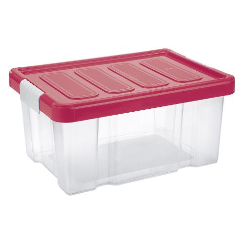 Puzzle box contenitore modulare trasparente con coperchio colorato, clip di chiusura e ruote per un facile spostamento.