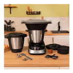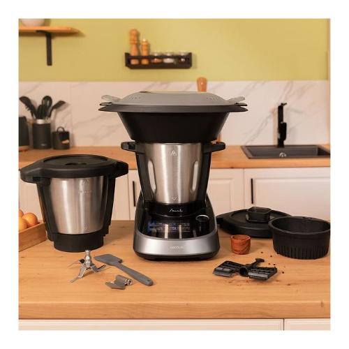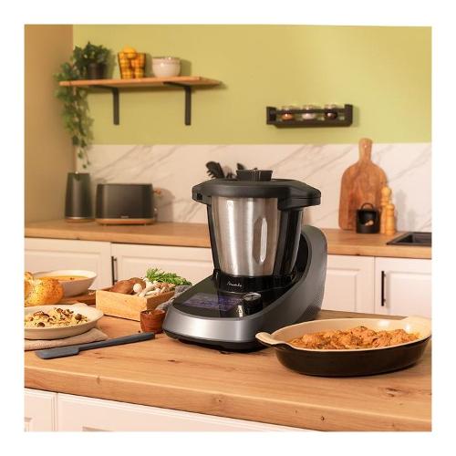 Robot da cucina multifunzione con 37 funzioni: tagliare a pezzi, sminuzzare, centrifugare, triturare, soffriggere, macinare, polverizzare, grattugiare, riscaldare, frullare, funzione yogurt, montare, emulsionare, mescolare, cucinare, girare, cucinare al vapore, sobbollire, confit, impastare, cucinare a bassa temperatura, bollire, mantenere caldo, fermentare, SlowMambo, cucinare con precisione grado per grado, cucinare a bagno maria, cottura lenta, velocità zero e funzione turbo, stufare, sfornare, tritare, frullare e pulire automaticamente, timer e screenblock.