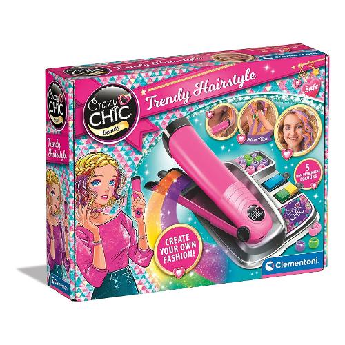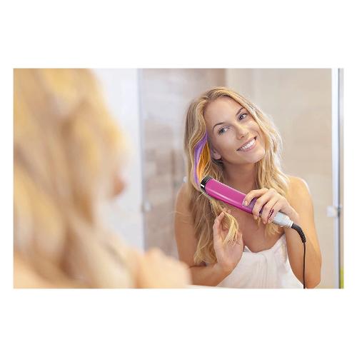 Con il nuovo kit colora capelli di crazy chic si possono creare ciocche arcobaleno per essere delle vere hairstylist! La piastra, dal design moderno e dal tocco professionale, è dotata di un alloggiamento per la cartuccia colore facilmente intercambiabile. Il risultato è un look sempre nuovo, grazie alla semplicità d'uso e ad una grande varietà di colori e tonalità. Il kit contiene anche un set di perline per impreziosire tutti gli stili! Ideato e progettato in italia.