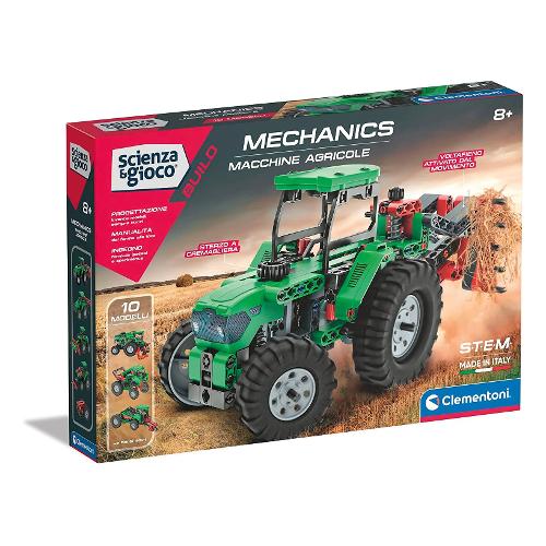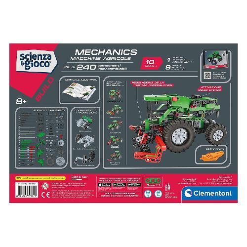 Un kit scientifico made in italy con cui divertirsi a scoprire la scienza dietro al funzionamento delle macchine agricole. Il kit contiene oltre 240 pezzi con cui realizzare e assemblare 10 diversi modelli dinamici. Il manuale illustrato contiene le istruzioni per assemblare i modelli, con approfondimenti sui principi della meccanica e dell'ingegneria. Tanti pezzi speciali come il differenziale, gli ingranaggi, il giunto cardanico e altri ancora, permettono di sperimentare e capire il funzionamento dei veicoli. L'app "scienza gioco build" integra l'esperienza di gioco fornendo un supporto al montaggio di tutti i modelli grazie alle animazioni 3d interattive.