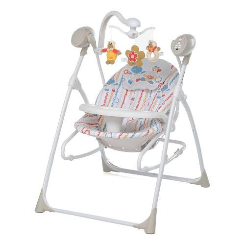 La sdraietta altalena carillon per bambini dalla nascita fino a 9 kg di peso è un dondolo musicale con dispositivo di movimento e diverse melodie. Si può utilizzare anche come sdraietta a dondolo. Dotata di telecomando per attivare a distanza il movimento della seduta e azionare le melodie musicali, con volume regolabile. Funzionamento a batterie (non incluse) e/o alimentazione a corrente (trasformatore in dotazione).